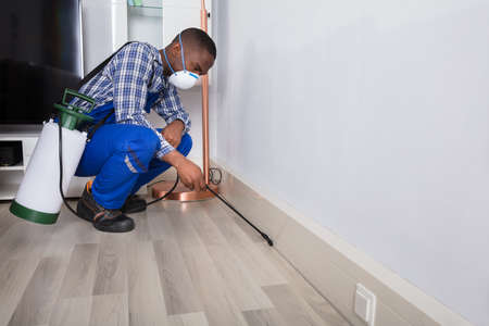 Pest Control Exterminator Man Spraying Termite Pesticide At Home