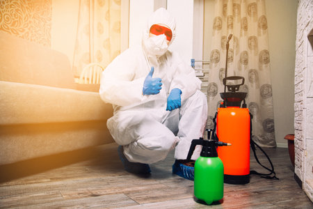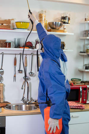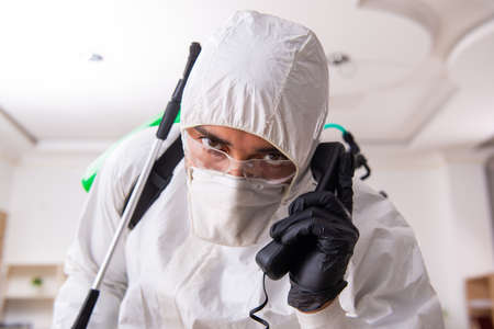 Pest and virus bacteria control contractor works in apartment