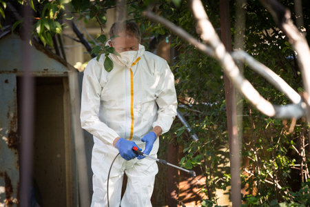 Industrial worker doing pest control using insecticide