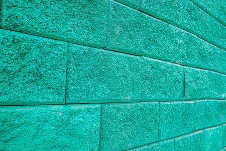 cyan brick wall with green plant background