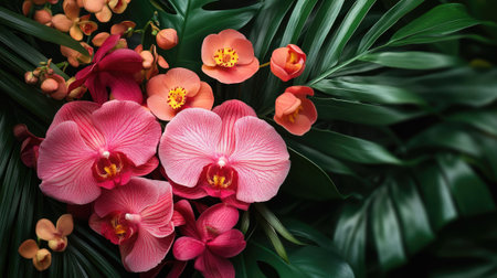 A stunning display of tropical flowers and lush greenery, showcasing vibrant colors and textures perfect for decor, design inspiration, and nature lovers.
