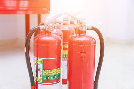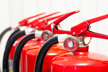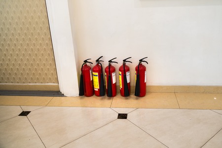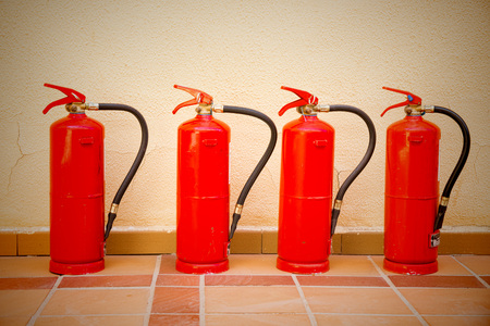 Group of ready fire extinguishers for use