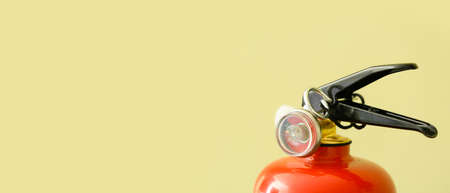 Fire extinguisher in the hand of a woman. Firefighters extinguish a fire.