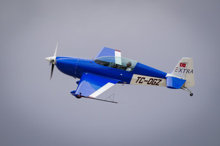 ESKISEHIR, TURKIYE - SEPTEMBER 20, 2025: Extra 300L (1290) display in Sivrihisar SHG Airshow