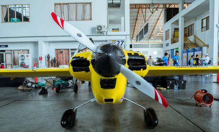Singapore - February 16, 2016: Front view of the PAC P-750 XSTOL aircraft from Pacific Aerospace, a New Zealand company, during Singapore Airshow at Changi Exhibition Centre in Singapore.