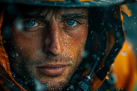 Digital image of single-minded man, who is a firefighter, close-up portrait, professional photoshoot