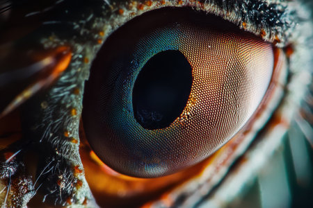 This close-up captures a butterfly's eye, highlighting the intricate texture and vibrant colors. The stunning details reveal the natural beauty and complexity found in nature.