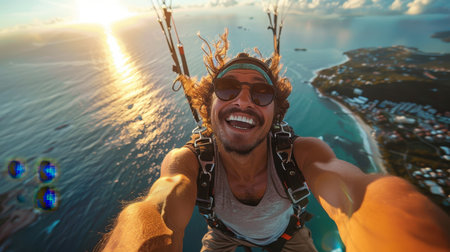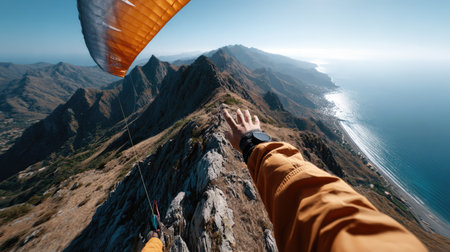 Experience the thrill of paragliding over breathtaking mountains and along a serene ocean coast, capturing the essence of adventure and freedom in nature.
