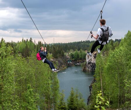 Ruskeala, Sortavala, Republic of Karelia, Russia - June 12, 2017: Marble quarry in Ruskeala Park.