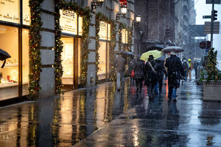 New York, USA - December 2019: Rainy day in New York City