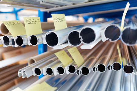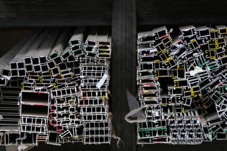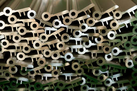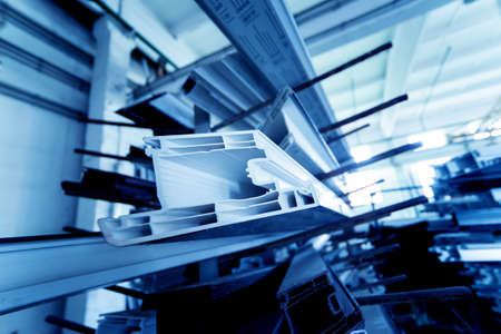 protruded aluminum profile for windows and doors manufacturing .selective focus