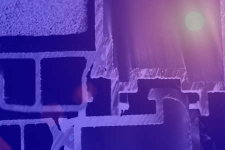 PVC window profile cut. Colored background. Details industrial equipment. Background