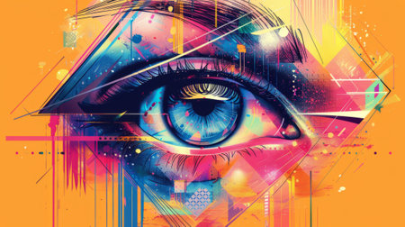 AI Generated. Intricate geometric artwork showcasing an eye with vibrant colors and sharp angles portraying depth and emotion