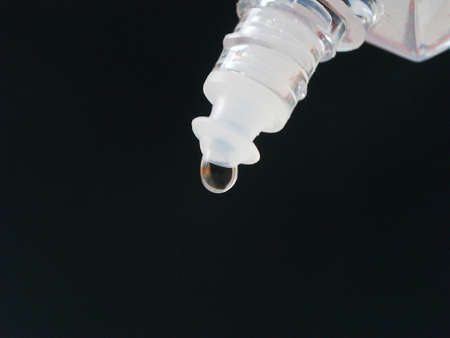 Pipette with a drop of face serum or oil for the face and hyaluronic acid on beautiful black background, close-up.