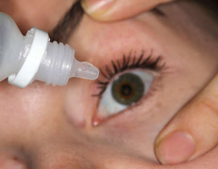 Allergic reaction to the eyes. Inserting eye drops. Eyes treatment.