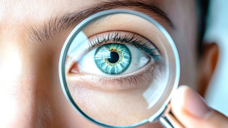 Close-up view of an eye during a medical examination, highlighting the iris and pupil. the image emphasizes the intricate details and features of the eye, showcasing its natural colors and textures under clinical lighting.