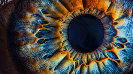 This close-up image captures the intricate details of an eye, showcasing vibrant iris colors, natural textures, and the beauty of human anatomy.