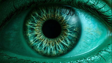 This stunning close-up image captures the intricate details and vivid colors of a human eye, showcasing the beauty of natural vision and the complexity of anatomy.