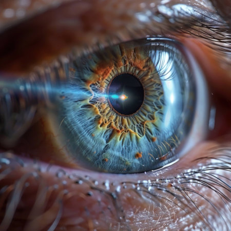 Detailed close-up of a human eye, featuring a colorful iris and sharp pupil, emphasizing the complexity of human anatomy and the beauty of vision