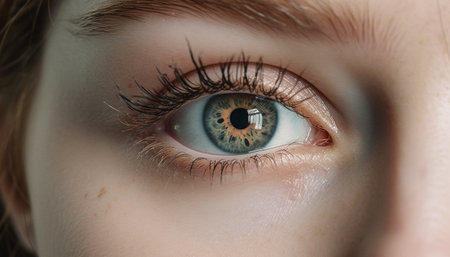 Caucasian woman beauty in macro portrait, staring with green eyes generated by artificial intelligence