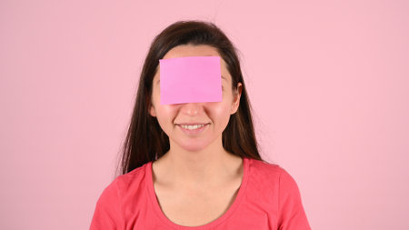 Stickers on the forehead of a woman. High quality photo