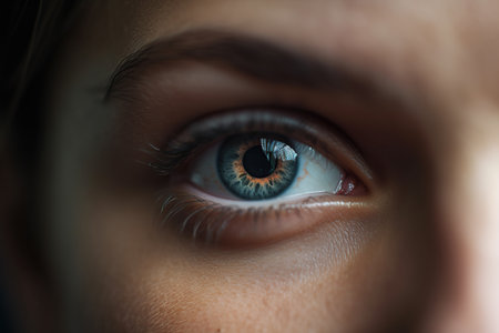Close-up view of a human eye highlighting intricate colors and reflective details