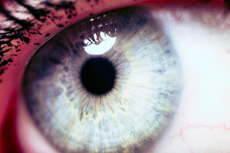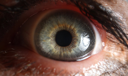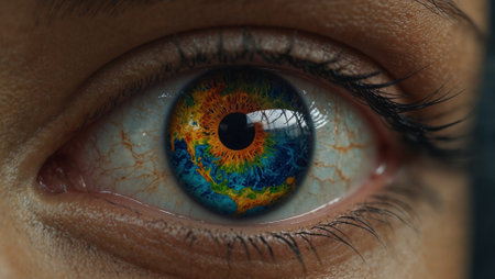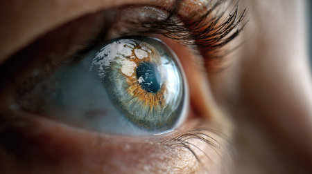 Close-up view of a human eye highlighting intricate colors and reflective details
