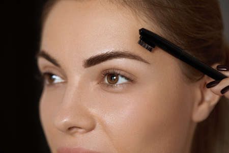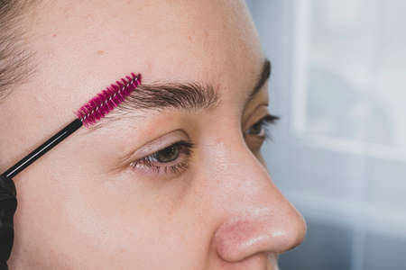 Girl with natural make up. Eyebrow correction. eyebrow correction in a beauty salon. Combing eyebrows. Beauty cosmetics Concept. Womans eyebrows. Beauty and care. Beautiful girl with eyebrow brush.