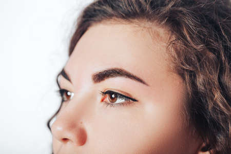 Eye and eyebrow of a young woman and eyebrow correction procedure
