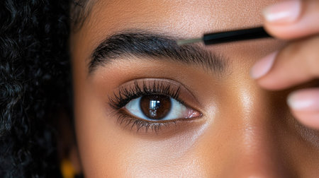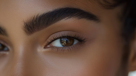 This close-up image showcases a beautiful brown eye with a perfectly defined eyebrow, emphasizing the intricate details of the eye and skin texture.