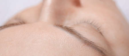 Close-up portrait of a woman after the procedure of correction and lamination of eyebrows.