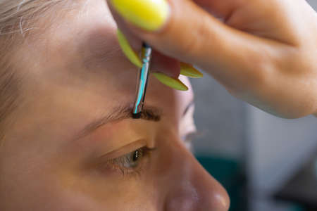 care of eyebrows in a beauty salon close-up