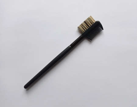 thin makeup brush. makeup brush with natural brown bristles. eye paint, eyebrow shaping. creating a new image. makeup artist tool. beautiful eyes and lips. makeup lines.