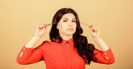 Just do it. Attractive female expressing positivity while doing new shape of eyebrows
