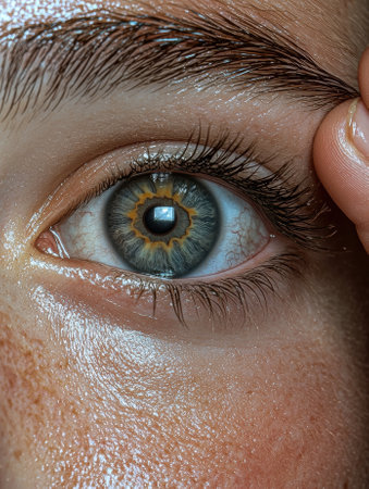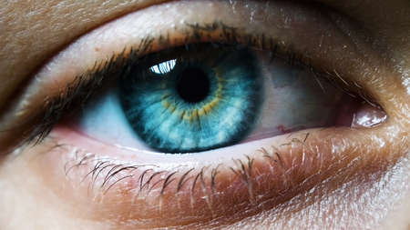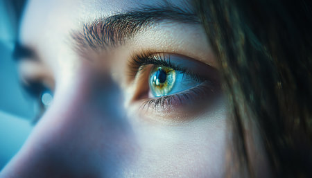 Close-up view of a human eye highlighting intricate colors and reflective details