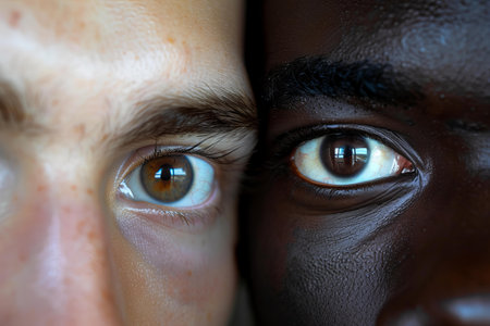 Black man and white womans eyes.Interracial race love concept. Anti-racism.
