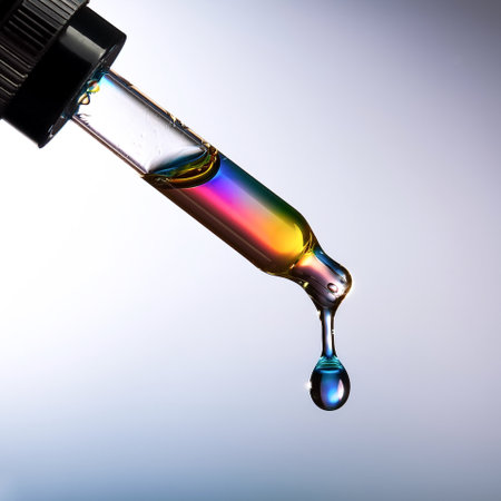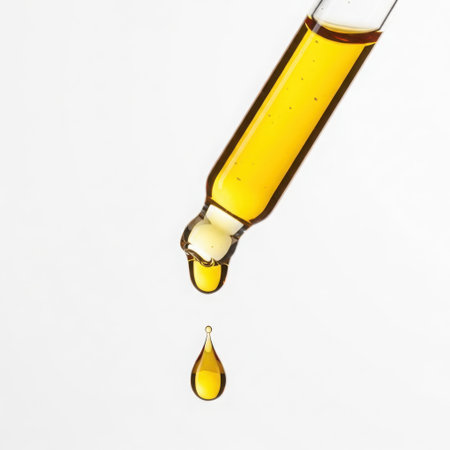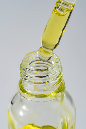 A drop of cosmetic oil falls from the pipette