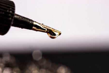 Droplet of golden liquid in a pipette