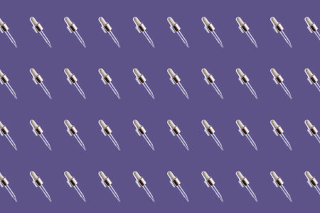 Pipette with serum on purple background with sunlight.