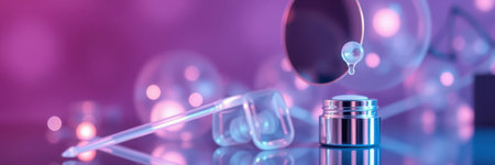 The image features a pipette dropper with clear liquid and bubbles, perfect for skincare or laboratory themes.