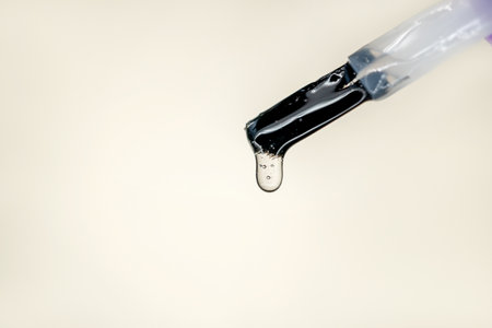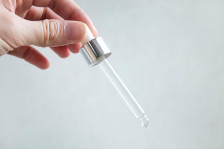 clear glass dropper filled with a viscous transparent liquid, perfect for cosmetic procedures. Ideal for skincare, beauty treatments, and spa applications