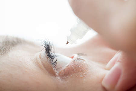 Close up of female face and eye drops