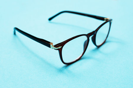 Glasses for vision on a blue background. Bad vision concept. Take care of your eyesight