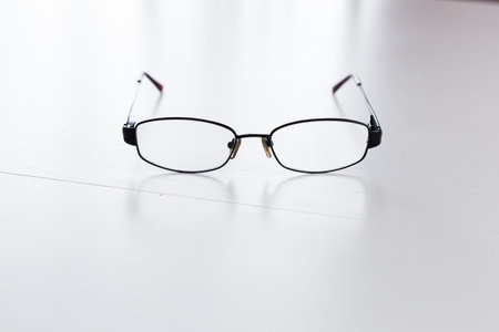 images of black glasses frame on a white table