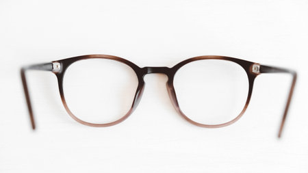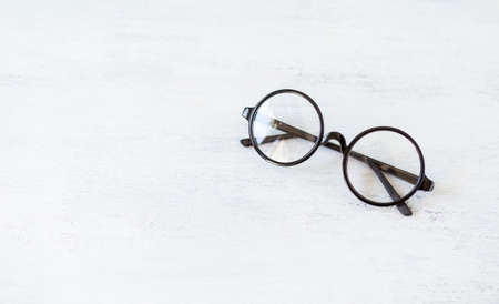 Classic style glasses on white texture background, eyewear fashion, reading glasses