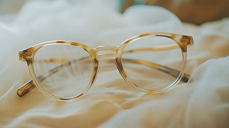 This image features elegant transparent eyeglasses resting on soft, luxurious fabric, highlighting modern style and clarity in eyewear fashion.