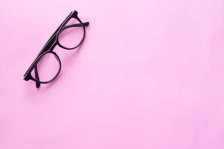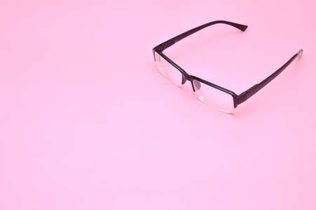 Black glasses , Minimal style layout Leave blank for the text. On a pastel pink background