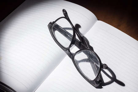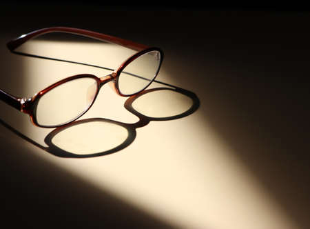 Dark image of eye glasses with hard light and shadow. eye glasses after working hard.