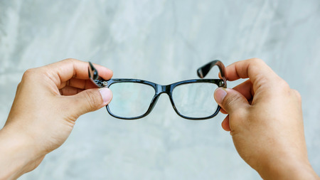 woman hand hand holding eyeglasses closeup ,eye care concept