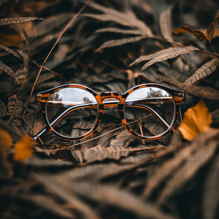 Eyeglasses on the background of autumn park. Selective focus.